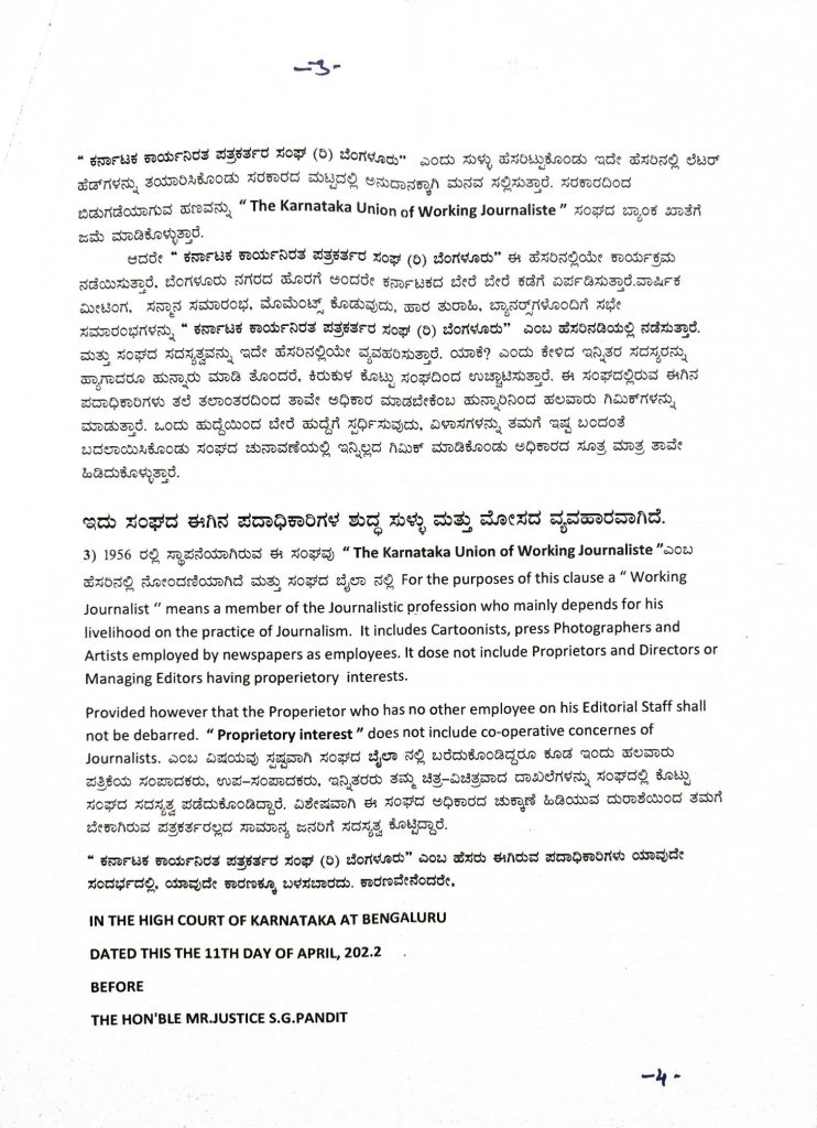 ಅಷ್ಟಕ್ಕೂ ಪತ್ರಿಕಾ ಮಾಲೀಕರು ಸಂಘದಲ್ಲಿ ಸದಸ್ಯತ್ವ ಪಡೆಯುವಂತಿಲ್ಲ ಎಂಬ ನಿಯಮ ಉಲ್ಲಂಘಿಸಿ, ಈಗಾಗಲೇ ನೂರಾರು ಮಾಲೀಕರುಗಳಿಗೆ ನಿಯಮಬಾಹಿರವಾಗಿ ಸಂಘದ ಸದಸ್ಯತ್ವ ನೀಡಿರುವುದನ್ನ ಪ್ರಶ್ನಿಸಿ ಕೋರ್ಟ್ ಮೆಟ್ಟಿಲೇರಿರುವಾಗ ಮತ್ತೆ ಪತ್ರಿಕೆ ಮಾಲೀಕರನ್ನೇ ಚುನಾವಣಾಧಿಕಾರಿಯಾಗಿ ನೇಮಿಸಿರುವುದು ಎಷ್ಟು ಸರಿ.