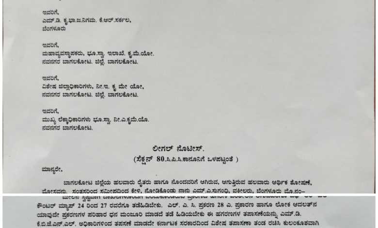 ಆಯುಕ್ತರು ಮತ್ತು ಪದನಿಮಿತ್ತ ಸರ್ಕಾರದ ಕಾರ್ಯದರ್ಶಿಗಳು, ನೀ. ಇ. ಯುಕೆಪಿ. (ಕಂದಾಯ) ಹಾಗೂ ಮಹಾವ್ಯವಸ್ಥಾಪಕರು, ಭೂ.ಸ್ವಾ.ಇ. ನೀ. ಈ. ಕೃ.ಮೆ.ಯೋ. ಮತ್ತು ವಿಶೇಷ ಜಿಲ್ಲಾಧಿಕಾರಿಗಳು, ನೀ. ಇ.ಕೃ ಮೇ ಯೋ, ಮುಖ್ಯ ಲೆಕ್ಕಾಧಿಕಾರಿಗಳು ಭೂ.ಸ್ವಾ.ಅ. ನೀ. ಇ.ಕೃಮೆ.ಯೊ. ನವನಗರ ಬಾಗಲಕೋಟ ಕಾರ್ಯಾಲಯ ಮತ್ತು ಇವರ ನಿಯಂತ್ರಣದಲ್ಲಿರುವ ಎಸ್ ಎಲ್ ಓ ಕಾರ್ಯಾಲಯ ನೀ.ಇ. ಕೃ.ಮೆ.ಯೋ. ನವನಗರ ಬಾಗಲ್ಕೋಟ್, ಮಹಾ ವ್ಯವಸ್ಥಾಪಕರು ಎಲ್. ಎ. ಕ್ಯೂ. ಹಾಗೂ ಪುನರ್ವಸತಿ ಪುನರ್ ನಿರ್ಮಾಣ ಕಾರ್ಯಾಲಯ ಐ.ಡಿ.ಯು.ಕೆ.ಪಿ. ನವನಗರ ಬಾಗಲಕೋಟಿ ಮತ್ತು ವಿಶೇಷ ಜಿಲ್ಲಾಧಿಕಾರಿ ನವನಗರ ಬಾಗಲಕೋಟ. ಎಸ್ ಎಲ್ ಓ ಕಾರ್ಯಾಲಯದಿಂದ ನಕಲಿ ದಾಖಲೆ ಸೃಷ್ಟಿಸಿ ಸಿಬ್ಬಂಧಿಗಳು ಮಧ್ಯವರ್ತಿಗಳು ನಕಲಿ ವ್ಯಕ್ತಿಗಳಿಗೆ 5 ಬಾರಿ ಹಣ ಸಂದಾಯವಾಗಿದೆ.. ಸದರಿ ಕ್ರಮವಾಗಿ 5 ದಾಖಲೆಗಳು ಮೇಲಿನಂತಿವೆ.